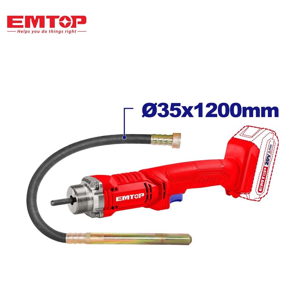 هزاز خرسانة لاسلكي، EMTOP concrete vibrator، هزاز خرسانة 20 فولت، هزاز خرسانة بطارية، أدوات بناء احترافية، معدات صب الخرسانة، هزاز لاسلكي للبناء، concrete vibrator cordless EMTOP.