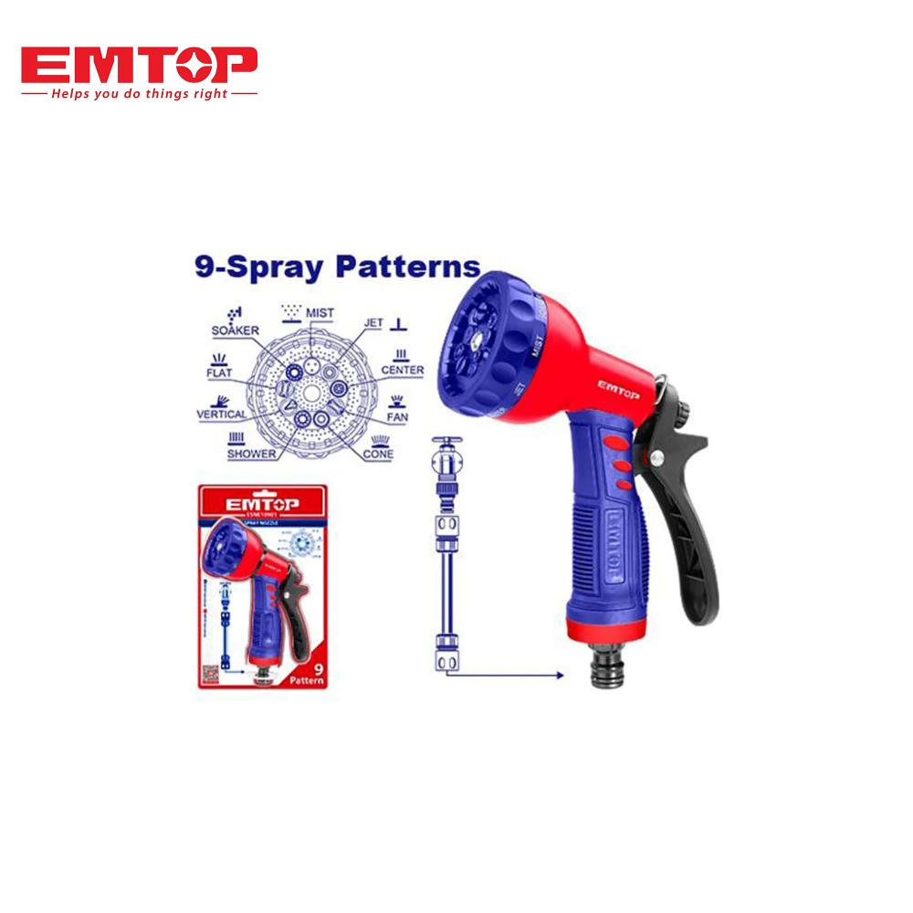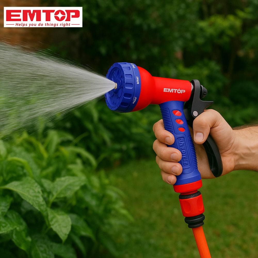 مسدس رش مياه، رشاش مياه، EMTOP water spray gun، 9 patterns water gun، hose nozzle، garden sprayer، أدوات حدائق، أدوات ري، أدوات تنظيف، رشاش متعدد الأنماط، water spray nozzle، مسدس رش احترافي، رشاش حديقة