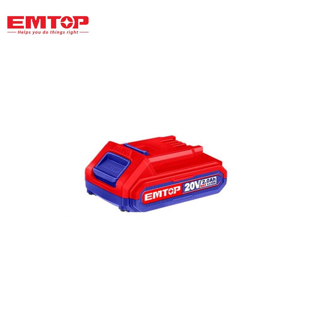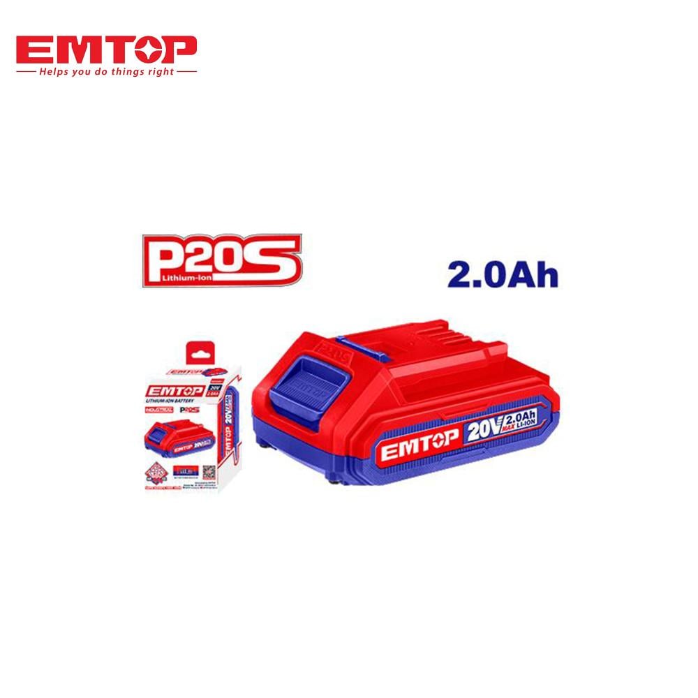 بطارية ليثيوم ايون 20 فولت، بطارية EMTOP P20S، بطارية إمتوب قابلة للشحن، بطارية أدوات كهربائية 20V، بطارية احتياطية للأدوات، Lithium-ion battery EMTOP، بطارية مع مؤشر LED، بطارية 2.0Ah، بطارية خفيفة الوزن.