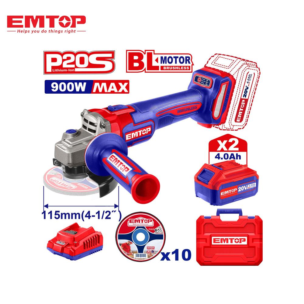 🔧 مطحنة زاوية لاسلكية احترافية EMTOP – موديل ELAG211542 | محرك بدون فحمات، 20V