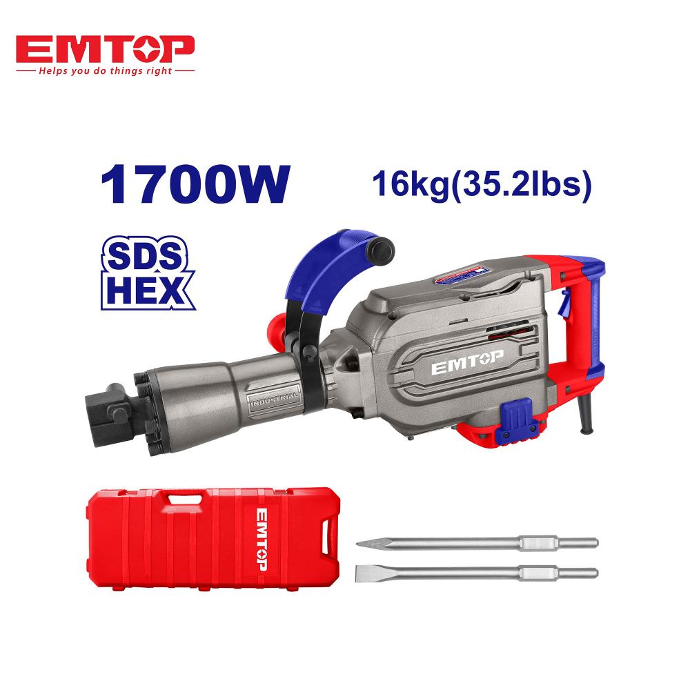 EMTOP هامر تكسير كهربائي احترافي – قدرة 1700 واط، قوة صدمة 45 جول | أداة قوية للهدم والتكسير الثقيل