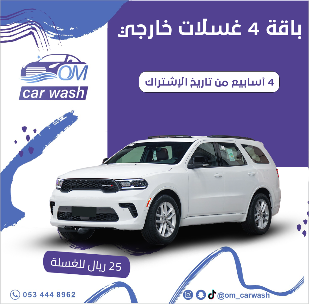 - الخدمه 4 غسلات خارجي فقط بدون اضافات ، في حال رغبة العميل اضافة اي عنصر يتم تبليغ عبر الواتس اب ودفع قيمة الاضافات