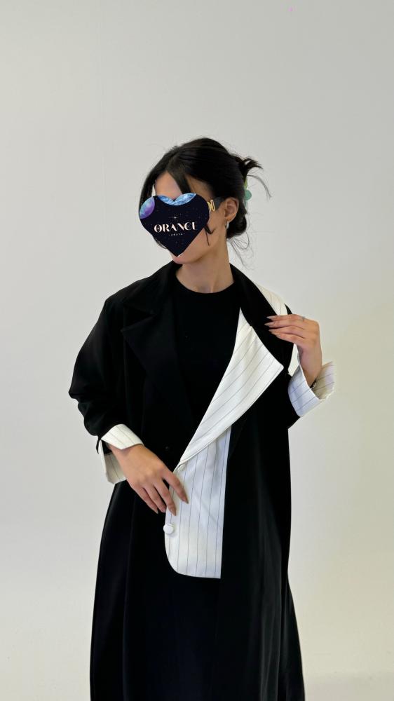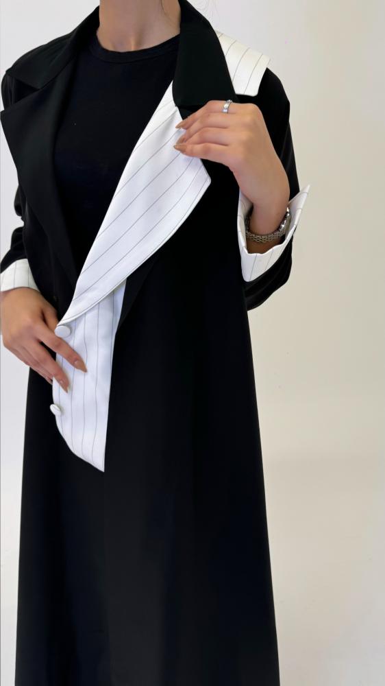 نوع القماش : كتان اسود درجة اولى + كتان ابيض مقلم