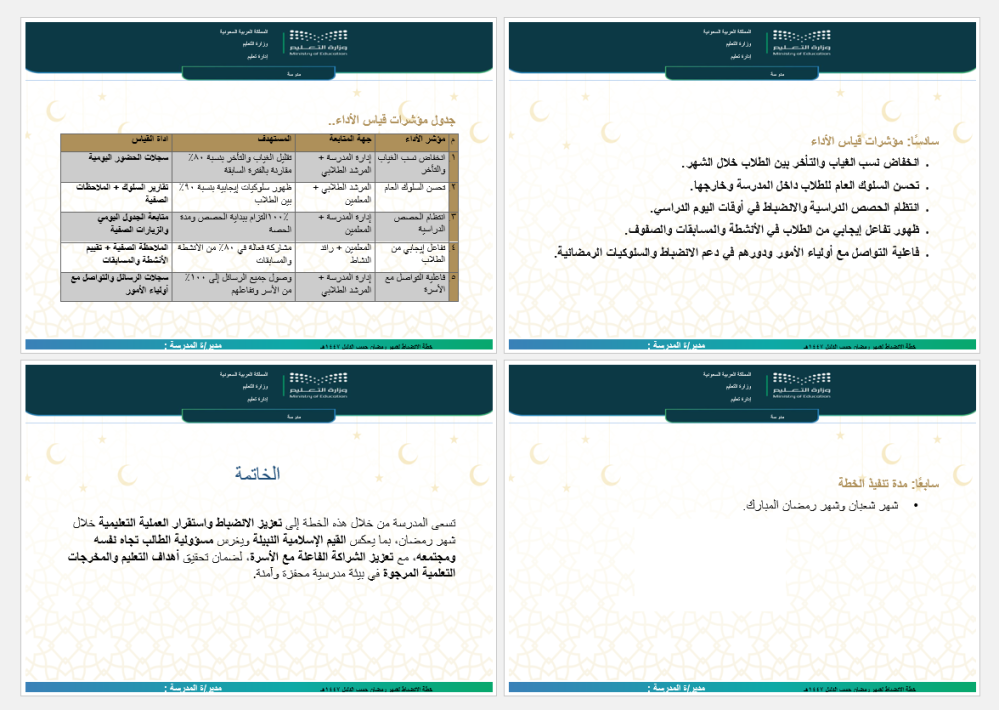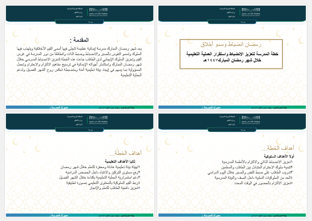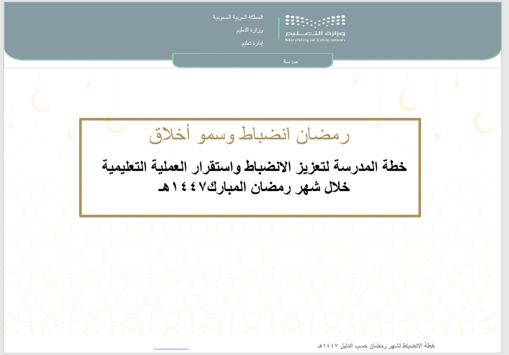 💡 خطة متكاملة لتعليم مستقر ومنضبط، وتعزيز القيم، وتحفيز الطلاب، بالتكامل مع الأسرة طوال شهر رمضان