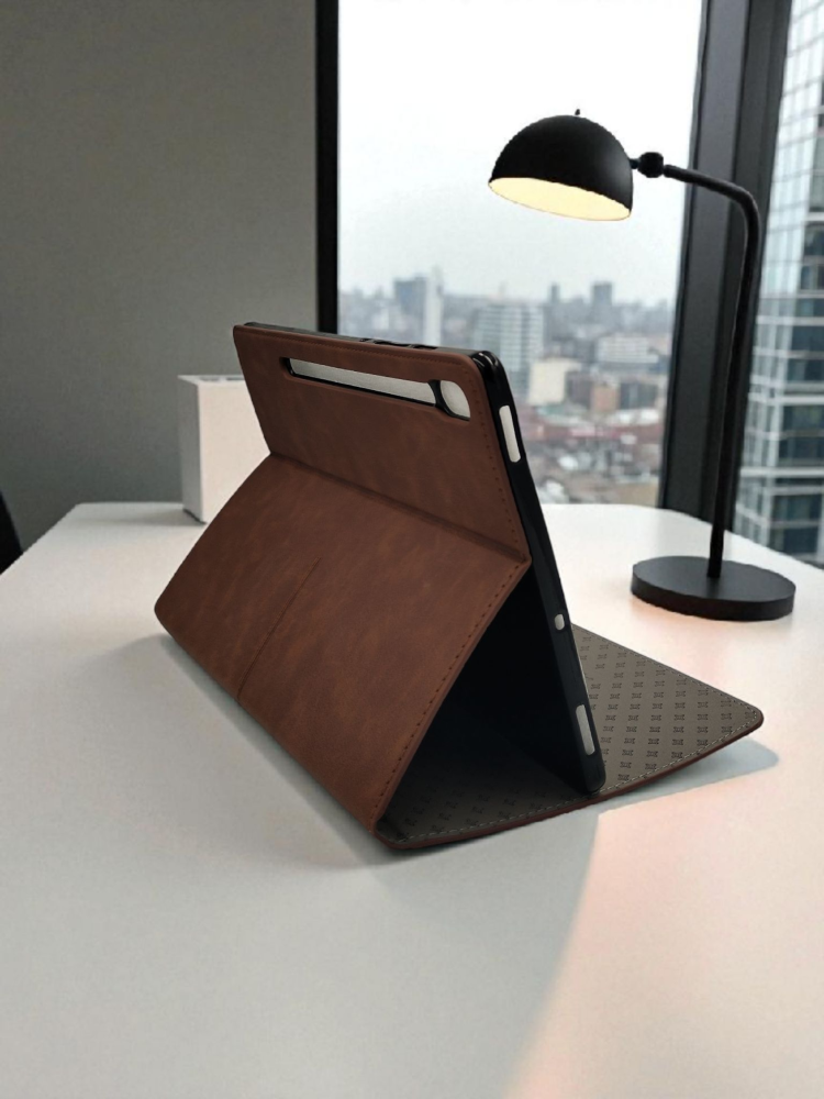 يتميز بغطاء قابل للطي يعمل كستاند لتوفير وضعيات متعددة للمشاهدة والكتابة، مع فتحات دقيقة تتيح الوصول الكامل لجميع الأزرار والمنافذ دون إزالة الجراب.