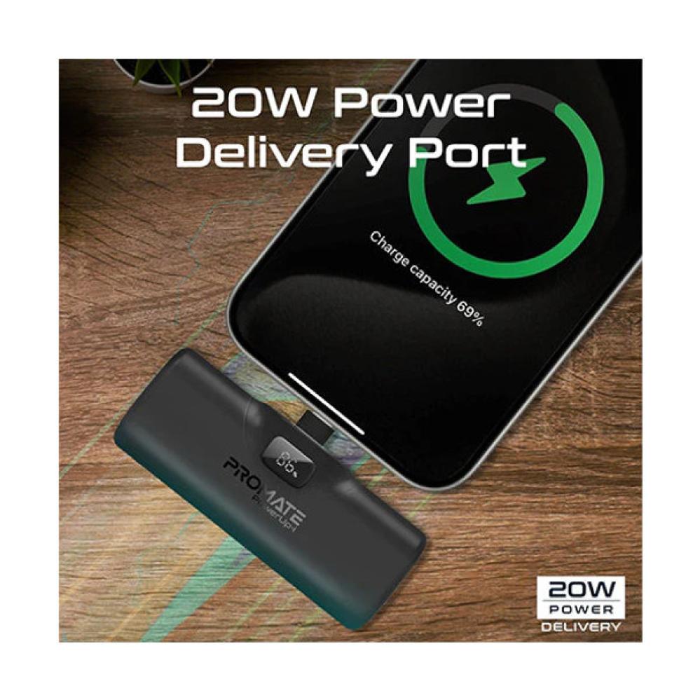 باور بانك فائق الصغر بسعة 5000 مللي أمبير في الساعة بقدرة 20 وات مع إضاءة مدمجة بمنفذ ايفون Powerup-I