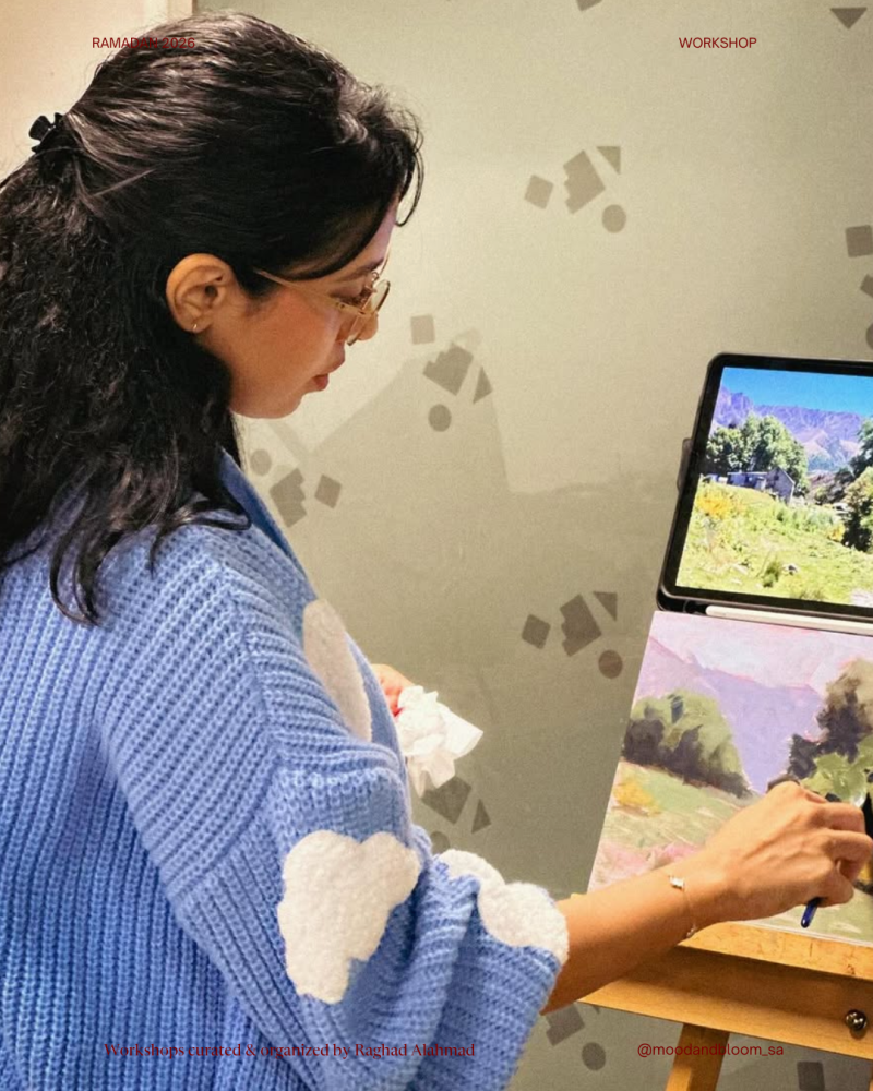 نوف رضوان فنانة بصرية سعودية ومديرة فنية، متخصصة في الرسم الزيتي منذ عام 2015، وتمتلك خبرة تمتد لأكثر من 7 سنوات في تقديم ورش العمل الفنية.