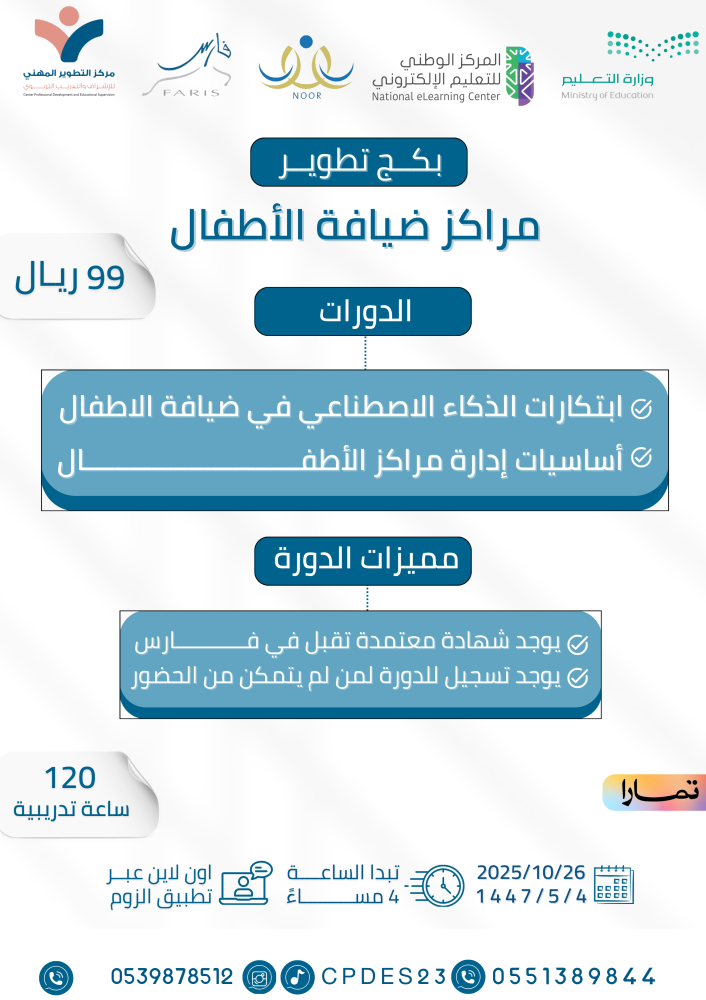 🌟 لا تفوّت الفرصة وكن جزءًا من جيل يقود مستقبل ضيافة الأطفال🌟