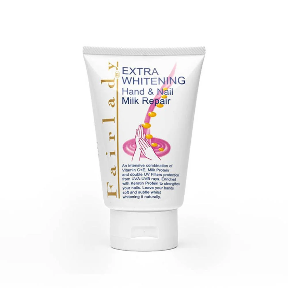 فيرليدي كريم تبييض و إصلاح لليدين والأظافر بالحليب يتميز بتركيبة غنية ببروتين الحليب وفيتامين سي وفيتامين إي والكيرياتين تعمل على تبييض اليدين ومنحها مظهر ناعم وموحد من خلال التقليل من ظهور التجاعيد وحماية البشرة من أشعة الشمس، يوفر تغذية عميقة لليدين ويزيد من مرونة البشرة.