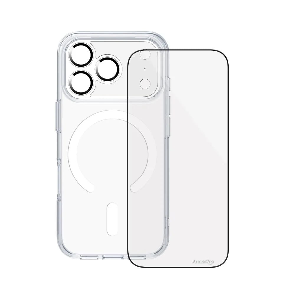 بكج ArmorPro 4 في 1 يقدم حماية شاملة لجهاز iPhone 17 برو، ويجمع كل ما تحتاجه في علبة واحدة. يشمل لاصقة شاشة خصوصية عالية الجودة، عدسة حماية للكاميرا، غطاء حماية للكاميرا، وكفر شفاف متوافق مع ماج سيف ليمنحك حماية متكاملة مع سهولة تثبيت الإكسسوارات والشحن المغناطيسي بدون أي تعقيد.