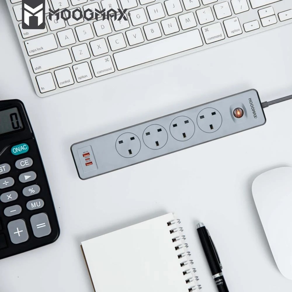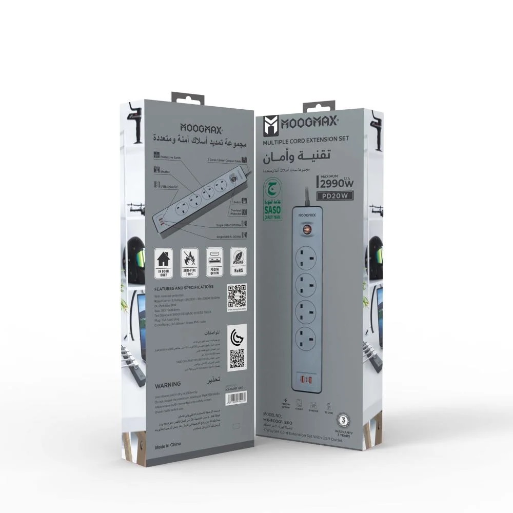 - مزودة بـ 4 منافذ كهربائية لتوصيل أكثر من جهاز في نفس الوقت، مما يقلل من الحاجة إلى استخدام العديد من الوصلات الكهربائية.