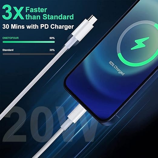يمكنك أيضًا استخدام هذا الكابل مع محول الطاقة ابل 18 واط أو 20 واط أو 29 واط أو 30 واط أو 61 واط أو 87 واط أو 96 واط USB‑C لشحن جهاز iOS الخاص بك وحتى الاستفادة من ميزة الشحن السريع على موديلات ايفون وايباد المحددة.