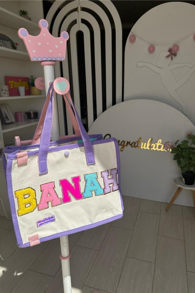 مقاس الشنطة: الطول 28cm والعرض 34cmيتم تثبيت الاحرف بالغراء فقطبالامكان طلب تثبيتها بالغراء مع الخياطة من الاضافات ⬇️