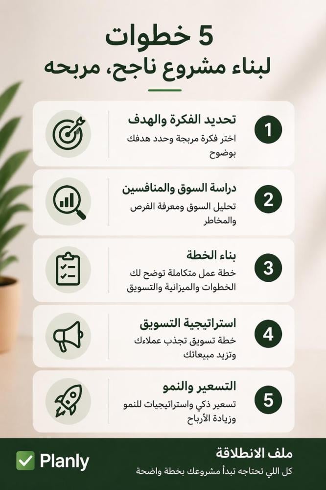 ابدأ رحلتك الريادية بخمس ملفات عملية متكاملة تساعدك تبني مشروعك بسهولة من الفكرة إلى الربح.