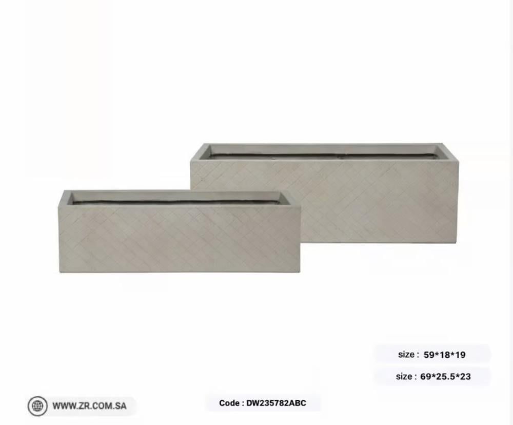 أحواض زرع مستطيلة فايبر هي إضافة مثالية لديكور منزلك أو حديقتك. تأتي في 3 مقاسات مختلفة لتناسب احتياجاتك وتصميمك. مصنوعة من أجود أنواع الفايبر، مما يجعلها متينة ومتينة وقابلة للاستخدام لفترة طويلة. تصميمها المستطيل يجعلها مثالية لوضع النباتات والأزهار داخلها، مما يضيف لمسة جمالية وأناقة إلى المكان. كما أنها تصلح للاستخدام في الأماكن الخارجية والداخلية، مما يجعلها خيارًا مثاليًا لجميع الأماكن.