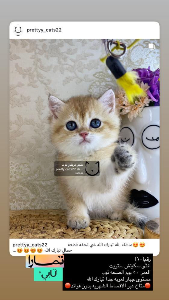 •يتم التواصل معكم عبر الواتس اب بعد عملية الشراء لتنسيق موعد التوصيل و إرسال شرح للعناية في الحيوان.