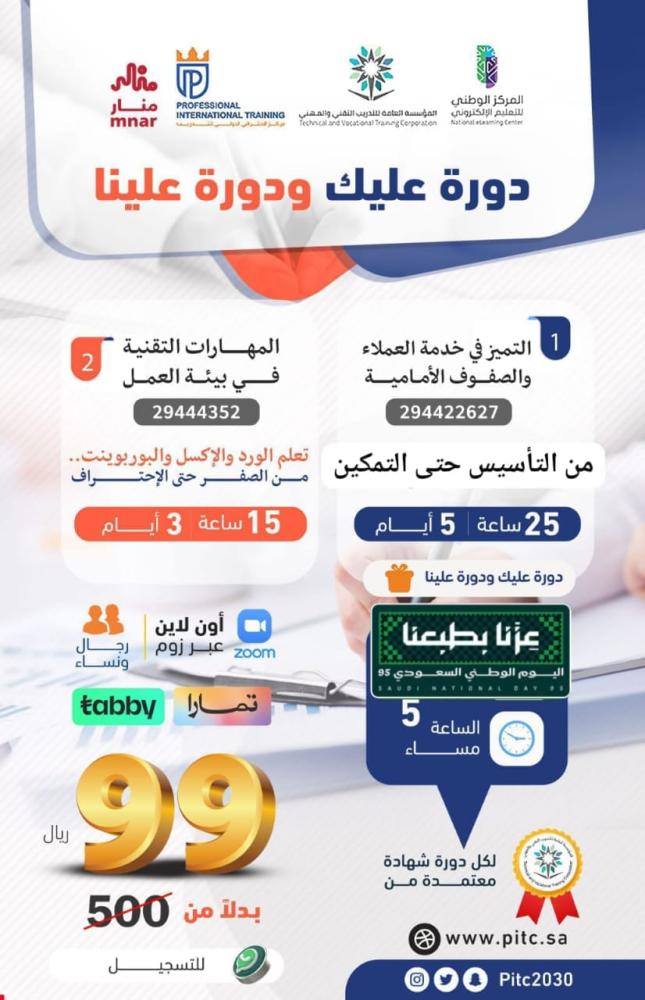 دورة التميز في خدمة العملاء والصفوف الأمامية و دورة المهرات التقنية في بيئة العمل