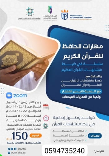 دورة مهارات الحافظ للقرآن الكريم حضور فقط