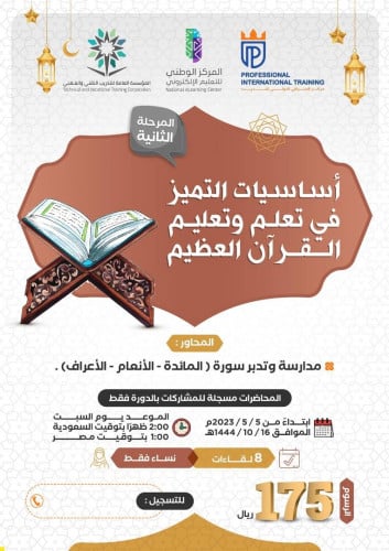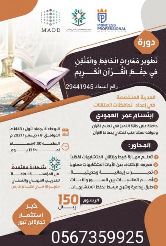 دورة تطوير مهارات الحافظ و المتقن في حفظ القرآن الكريم خصم خاص لأهل سوريا و تركيا فقط
