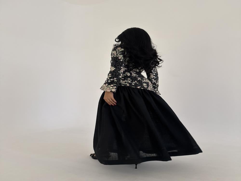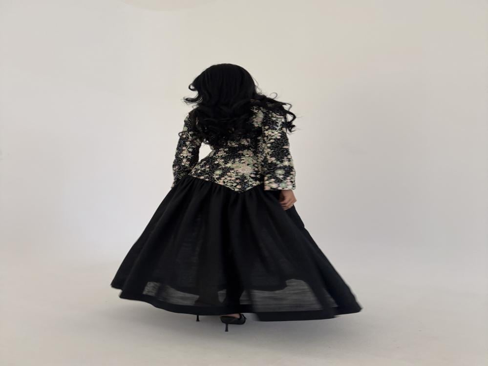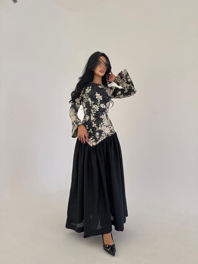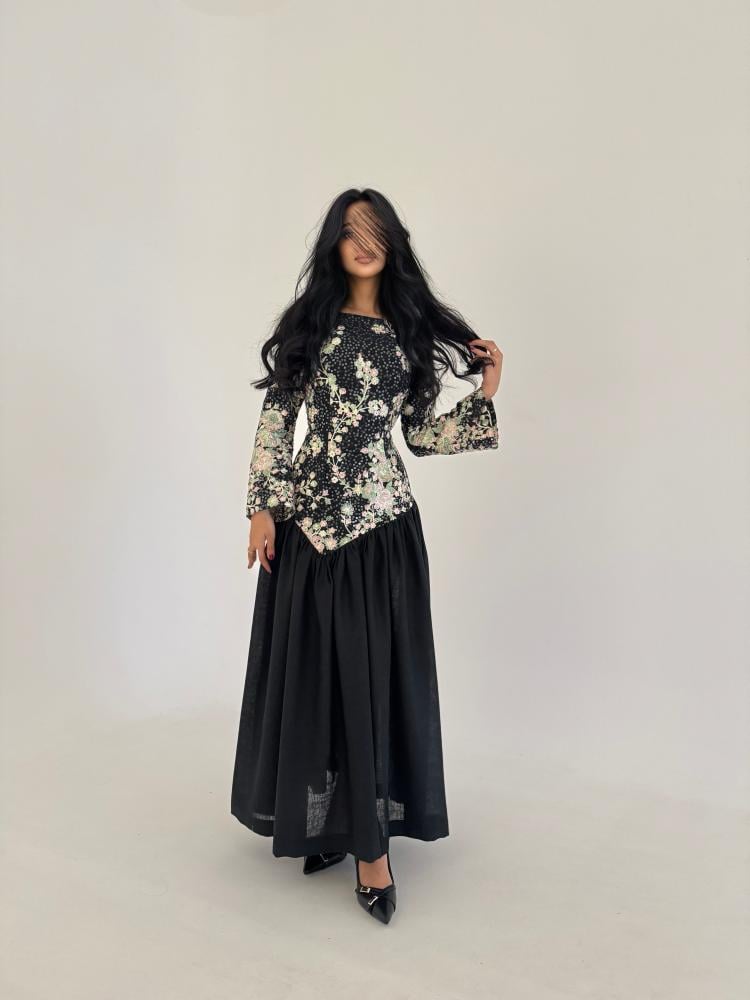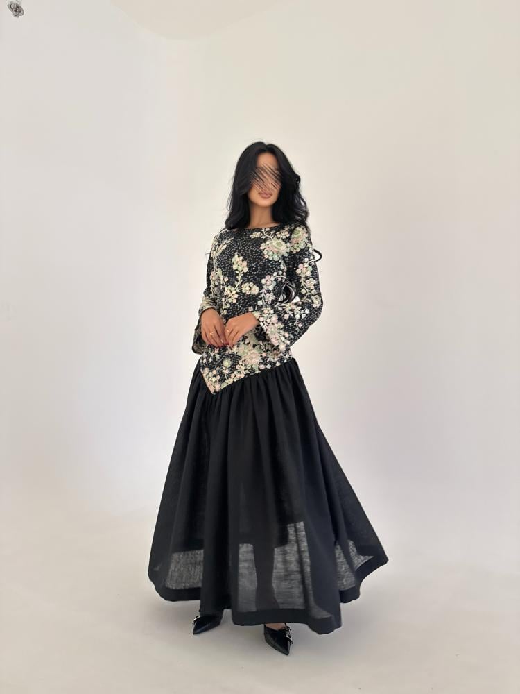 التفاصيل : لينن اسود مطرز تطريز هندي مع لينن اسود سادة