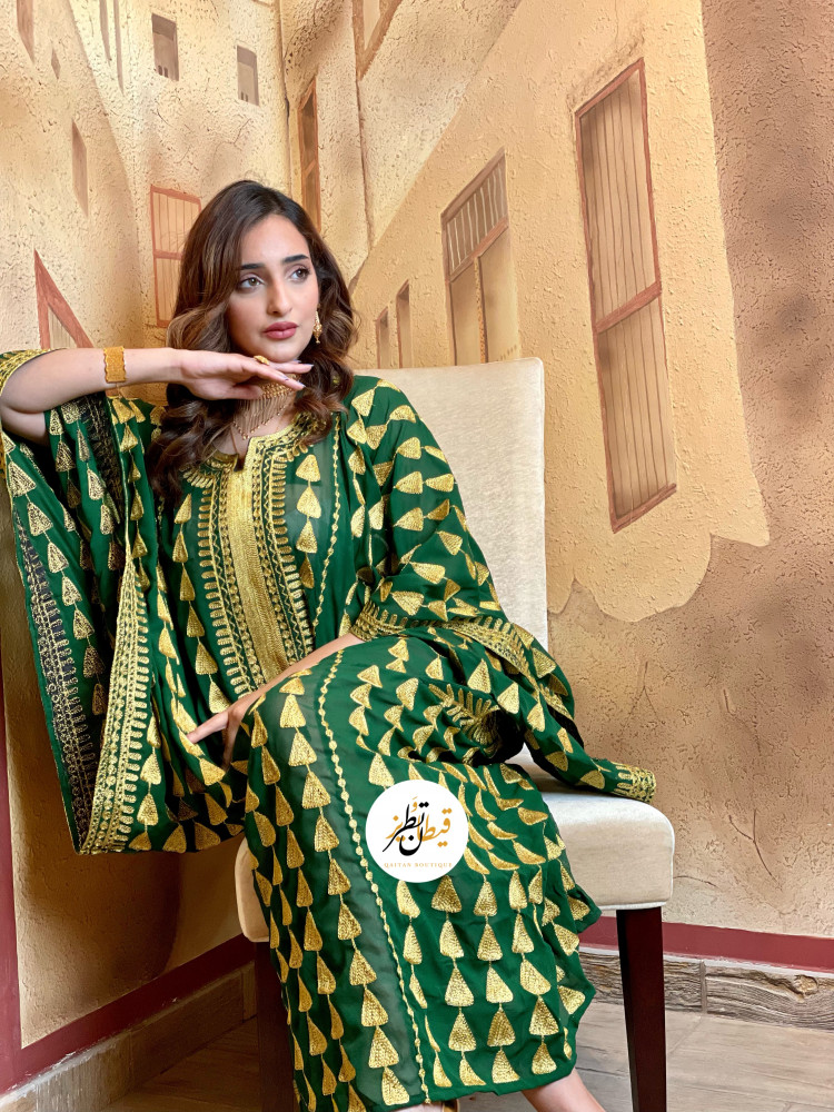 ثوب نشل شيفون مطرز بالذهبي الكامل