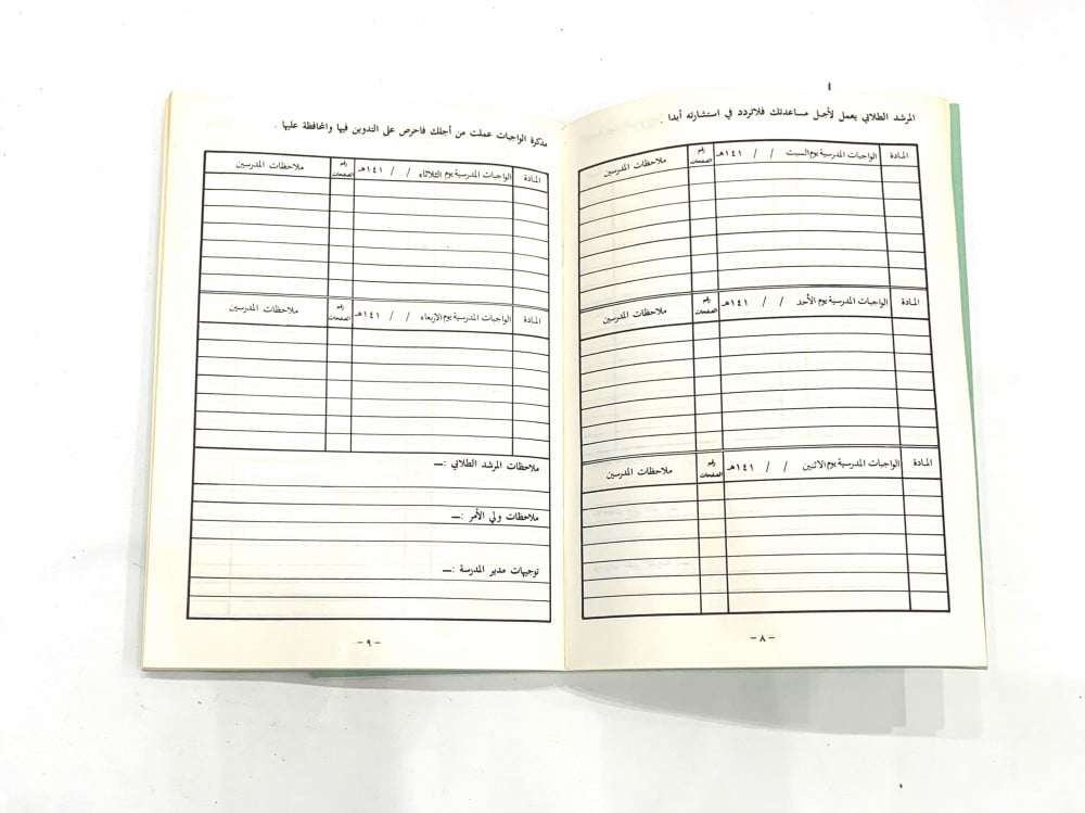 مذكرة الواجبات المدرسية … استخدمت في المرحلة المتوسطة عام 1411ه