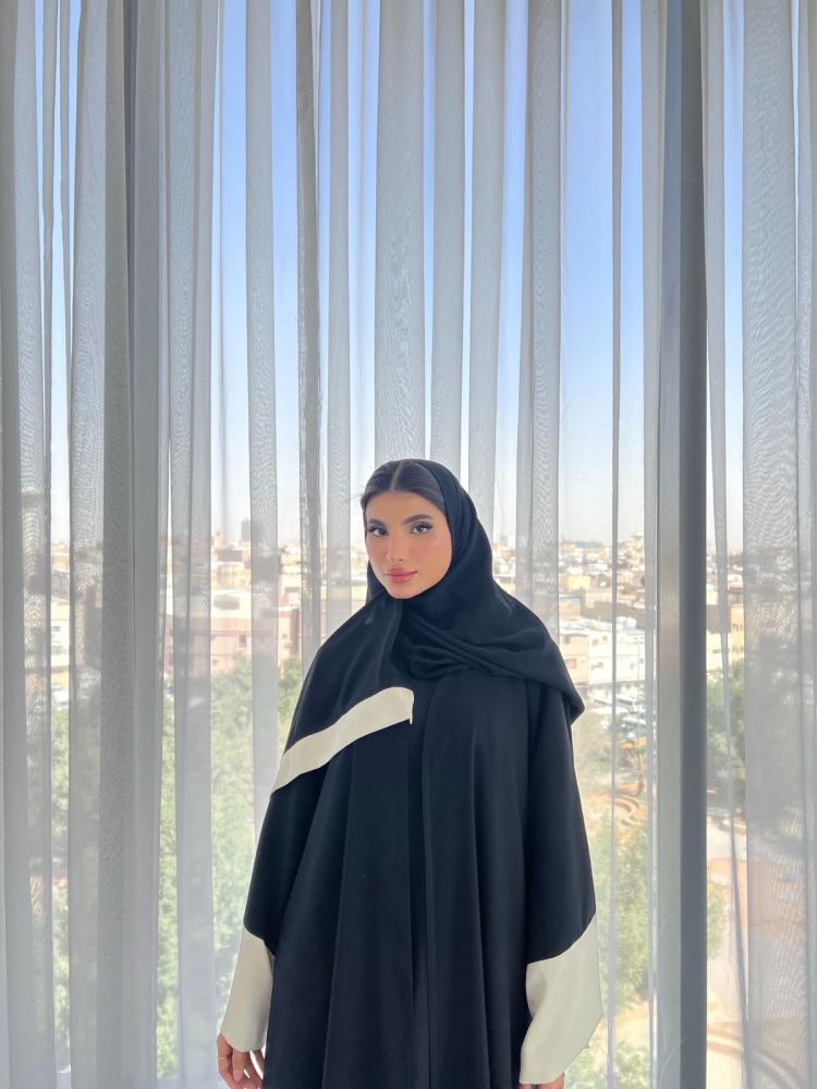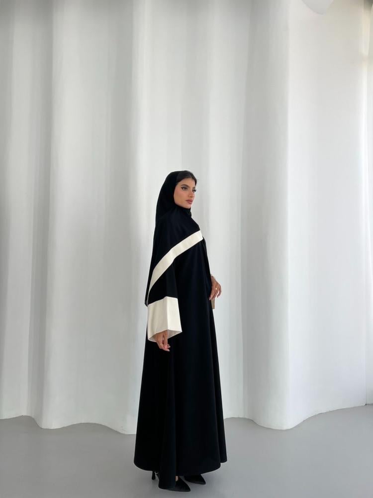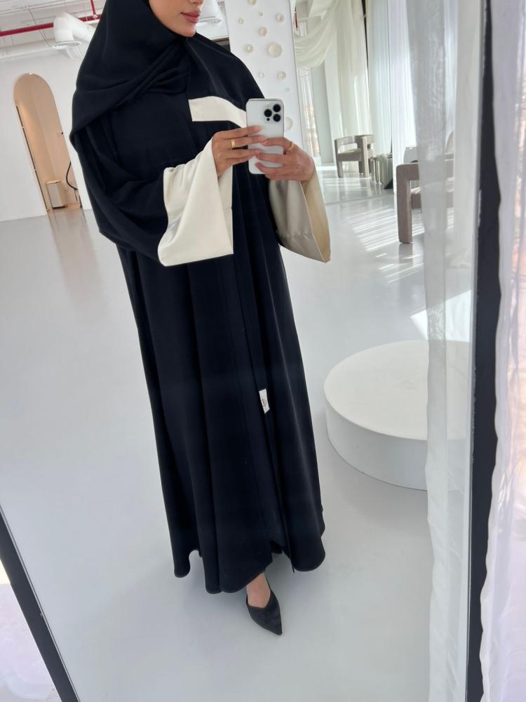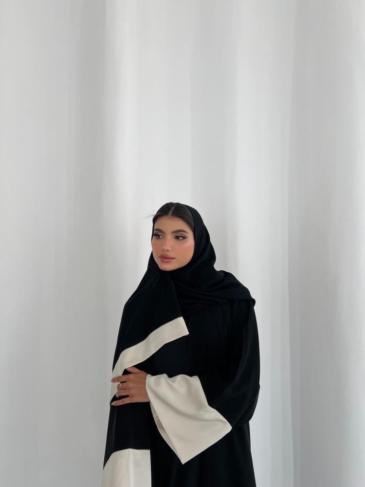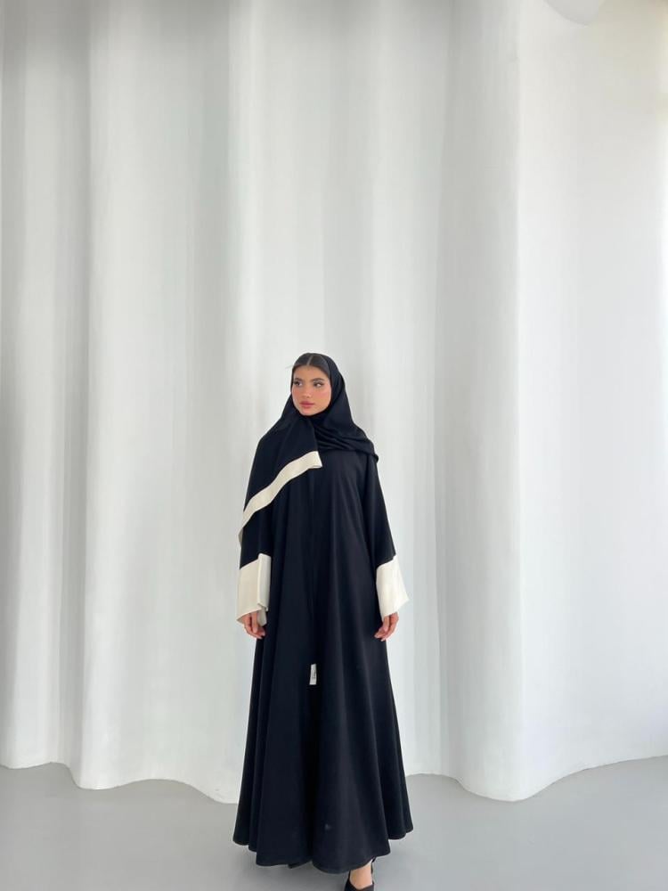 • عباية كريب ياباني و الاكمام و طرف الطرحة حرير كوري.