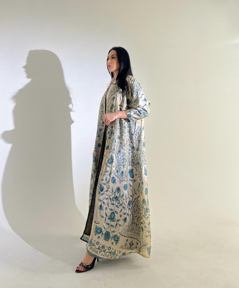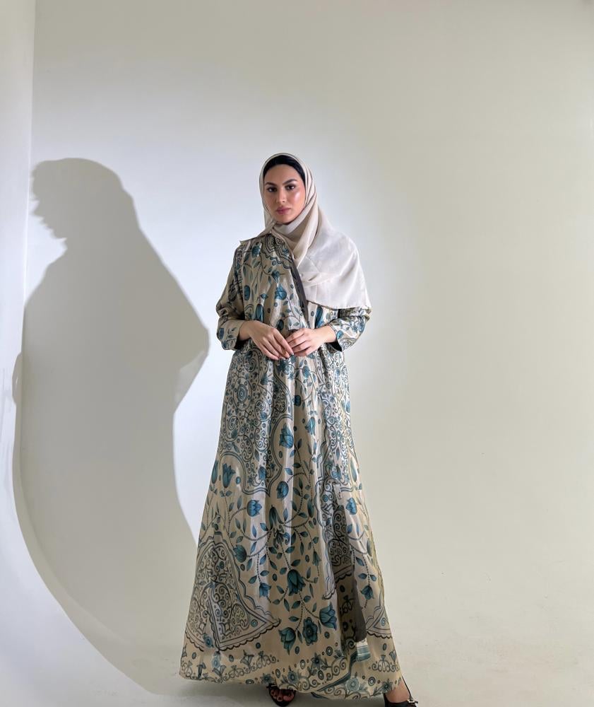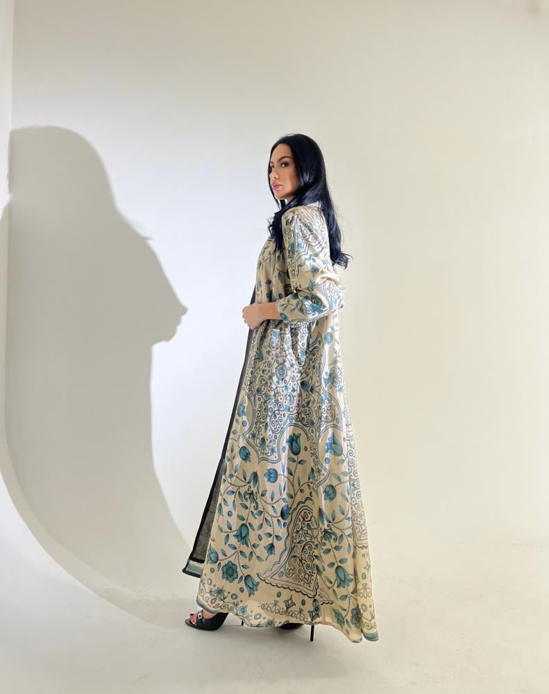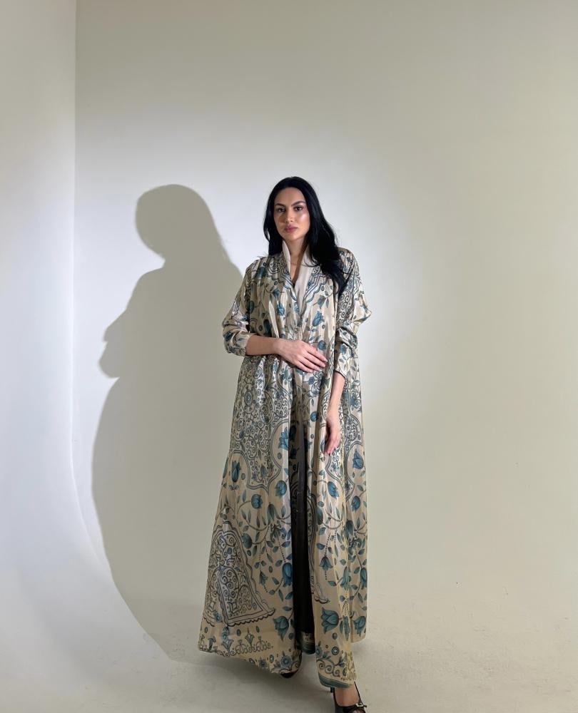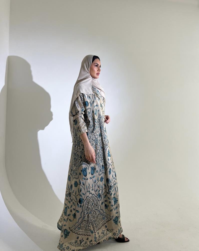 • عباية لينن بيج مشجر بتركواز ، نص كلوش.