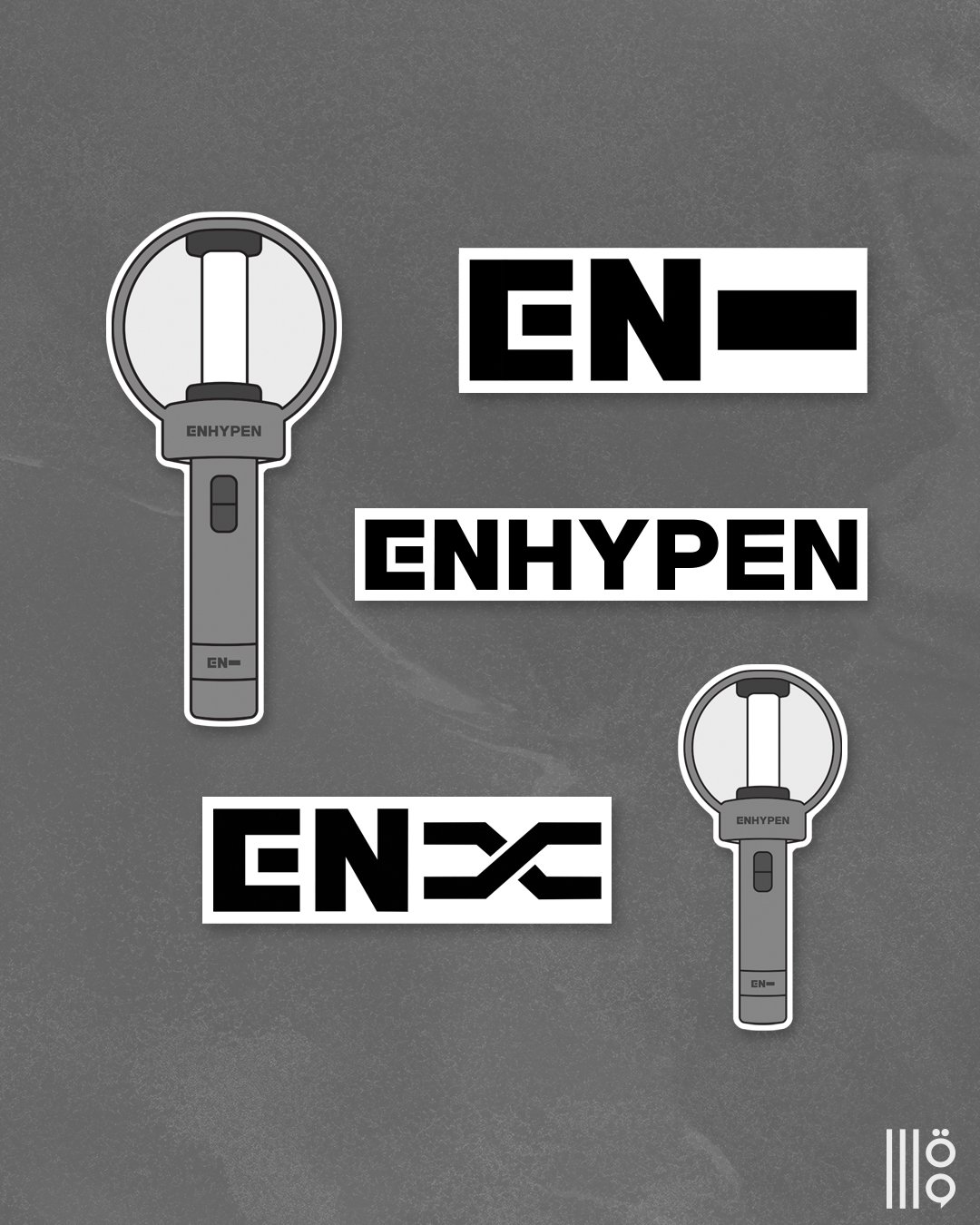 لايت الستيك بحجمين مختلفين، اسم الفرقة، شعار الفرقة وشعار المعجبين.
