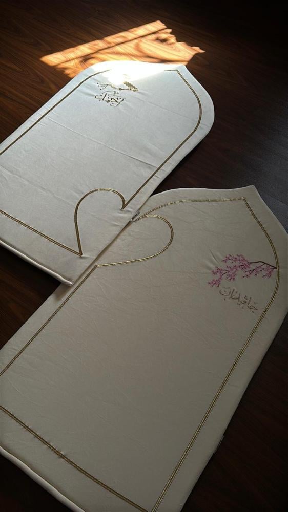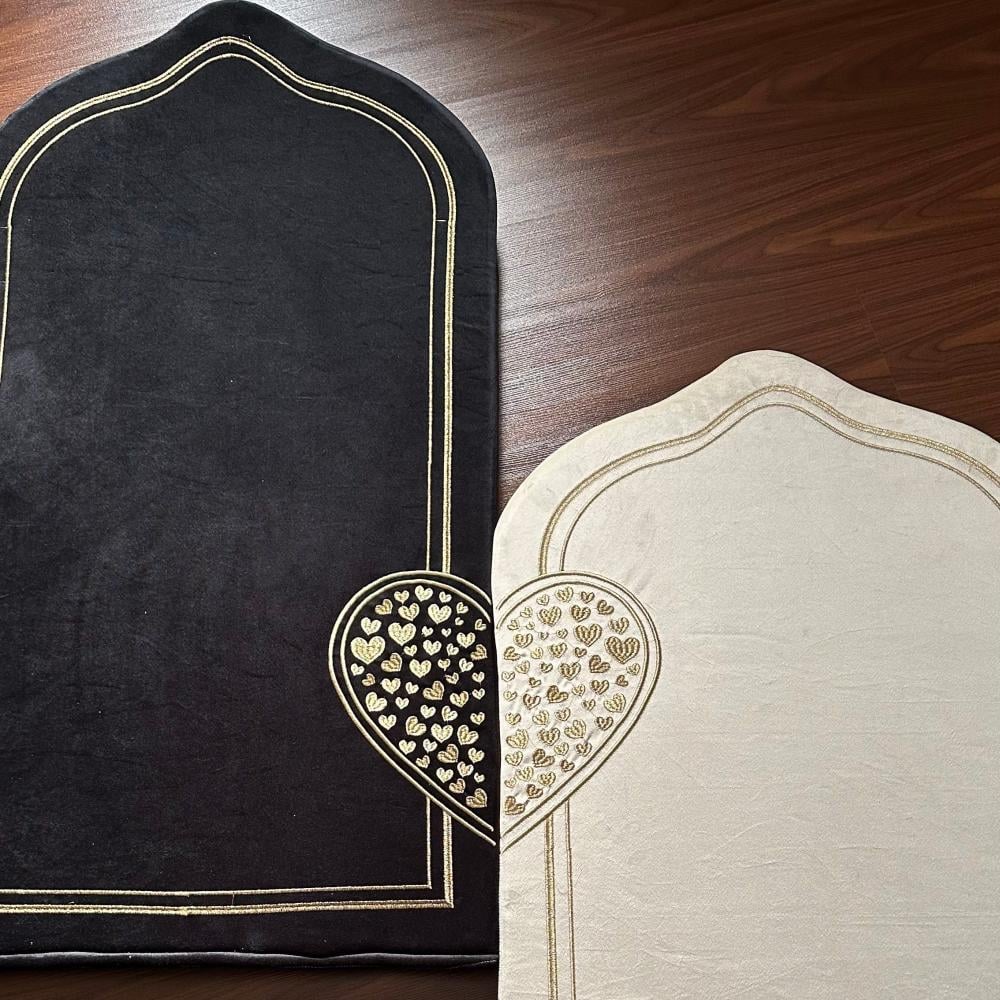 طقم متكامل من سجاد إسفنج بنقشة قلوب مطرزة، مثالي للاستخدام الزوجي أو كهدية أنيقة.
