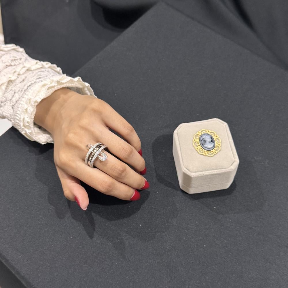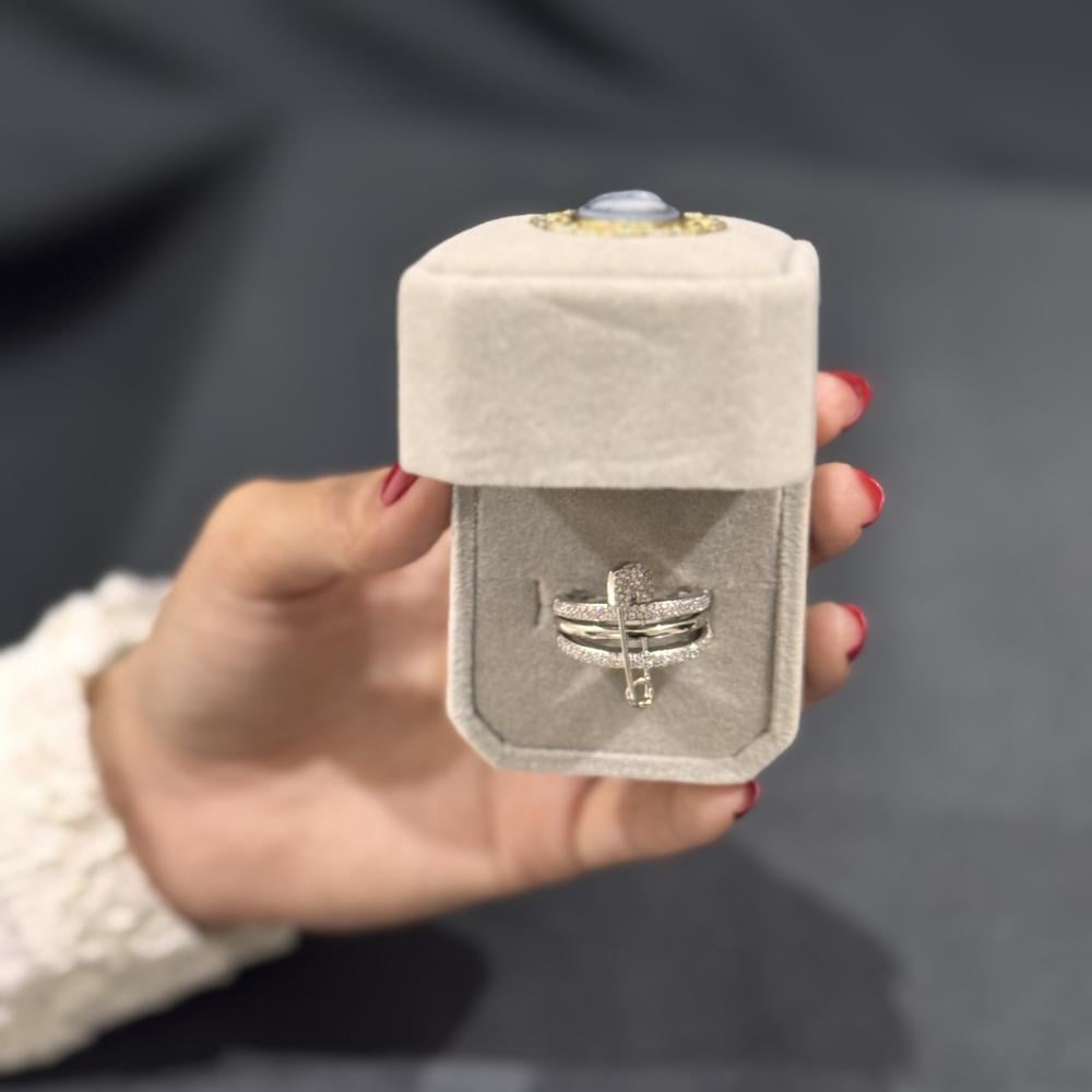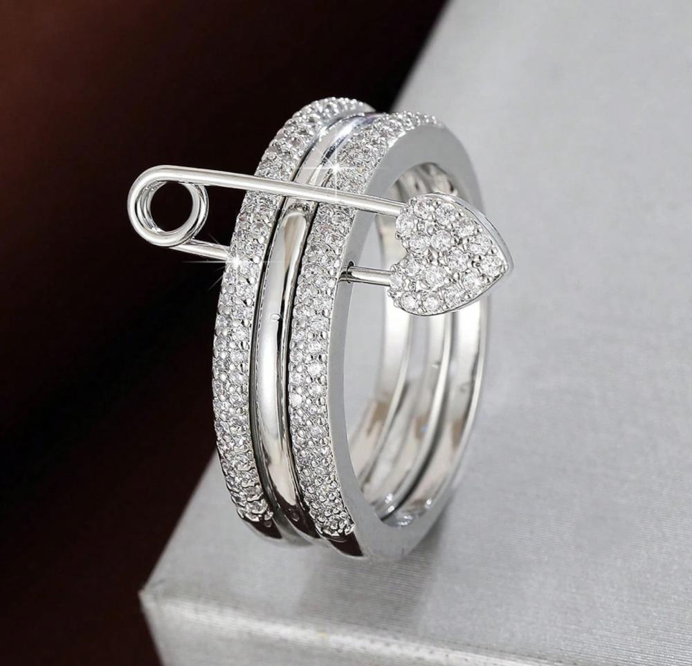 خاتم نسائي فاخر ،بتصميم. دبوس الأمان عالية الجودة المقاس 7 فضي اللون مصنوعة بالزركيونيا التقلديه والفاخرة مناسب للارتداء للأعمال والحفلات والمناسبات