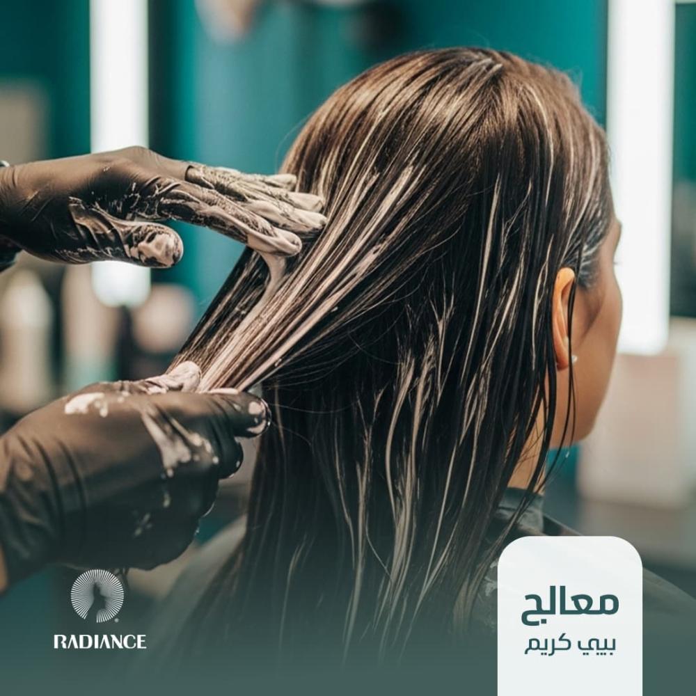 معالجة حرارية باستخدام منتج بيبي كريم وتشمل فرد الشعر بالحرارة.