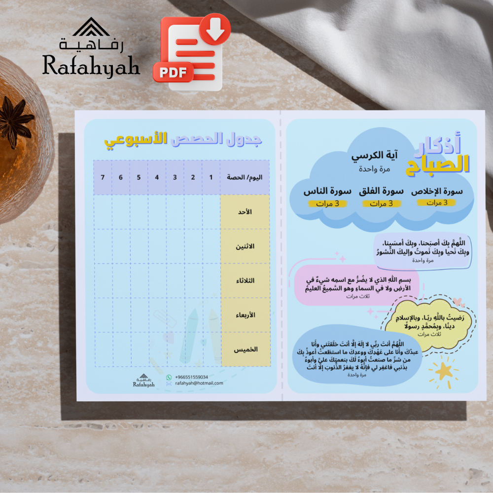 ✨ اجعل يومك أكثر إنتاجية وبركة مع الجدول الدراسي الأسبوعي وأذكار الصباح – ملف PDF للطباعة.