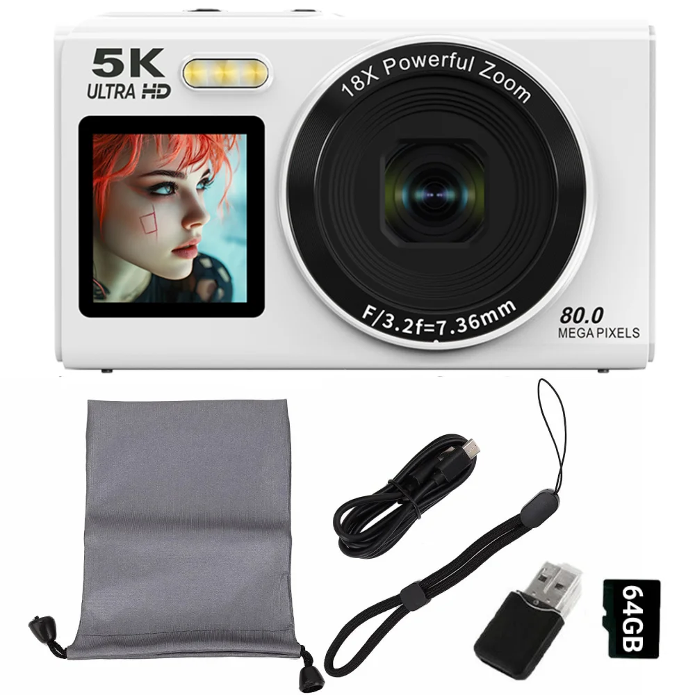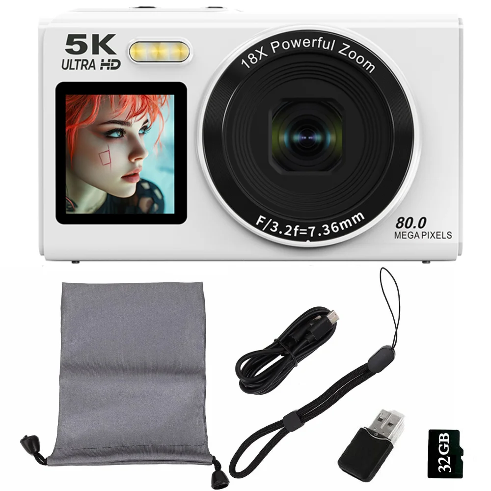 كاميرا رقميه صغيره تمنحك تجربة تصوير احترافية بدقة مذهلة تصل إلى 80 ميجابكسل وفيديو بدقة 5K، مع تصميم محمول وخفيف الوزن يسهل استخدامه في أي مكان. مثالية للسيلفي، مدونات الفيديو، والتصوير اليومي، مع شاشات مزدوجة ومرشحات ذكية لتصوير سلس واحترافي في كل لقطة.