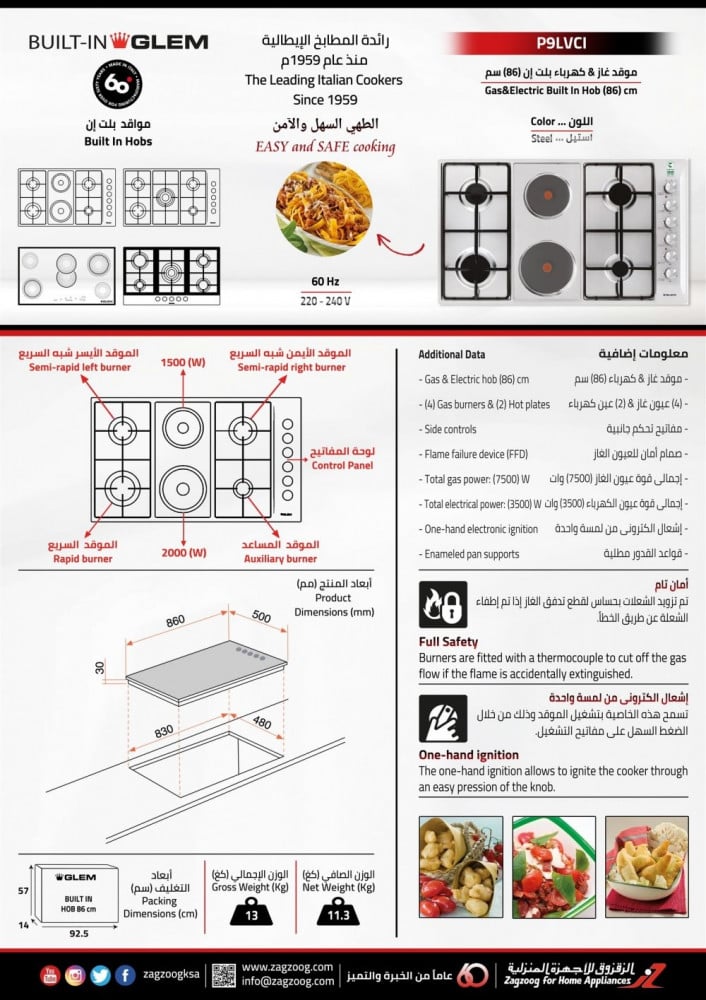 Glem Gas Hob 2Elc&4Gas,86cm,Enml,Sd/C