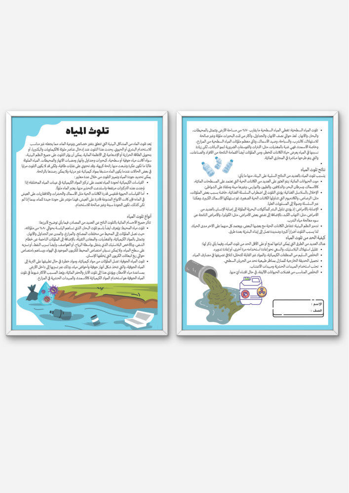 بحث تلوث المياه عباره عن ملف من صفحتين جاهز للطباعه ، يتم تسليم الملف فور الشراء.