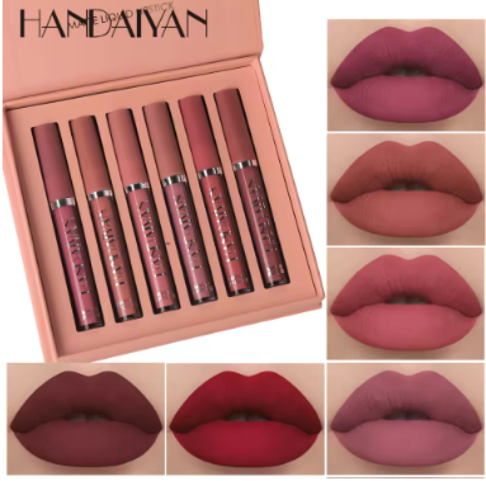 مجموعة HANDAIYAN مكونة من 6 أحمر شفاه سائل غير لاصق، صندوق هدايا ملمع شفاه يدوم طويلاً - ملمع شفاه غير لامع، مقاوم للبهتان