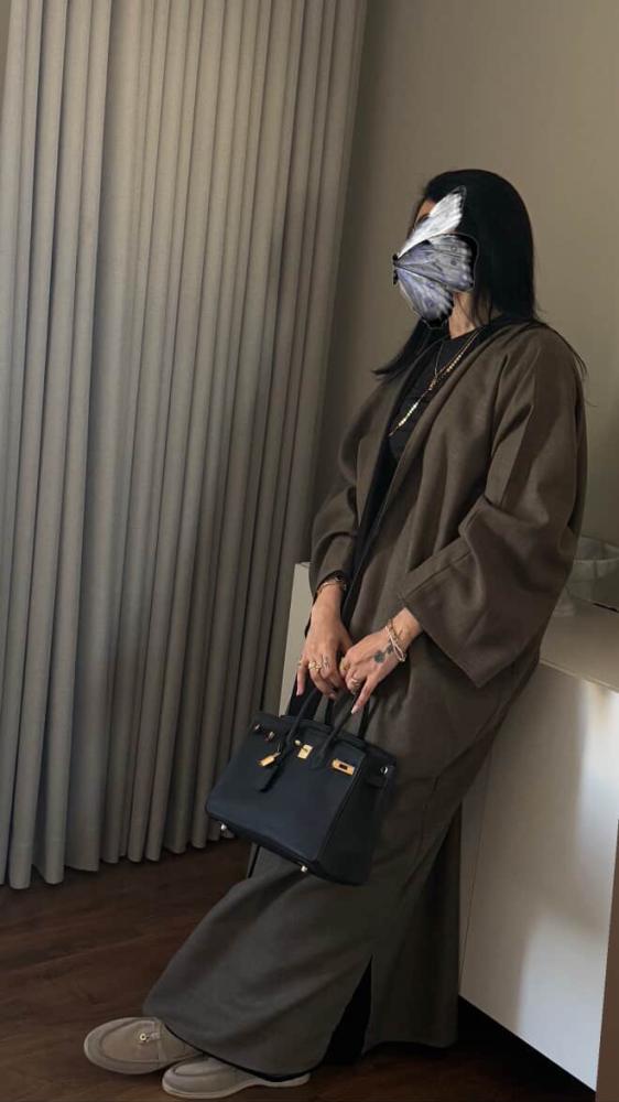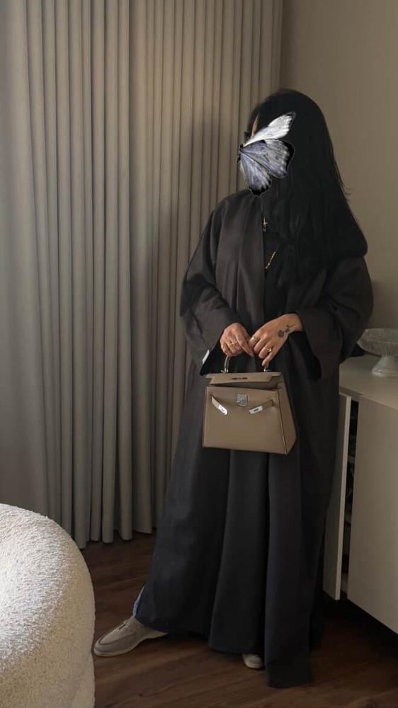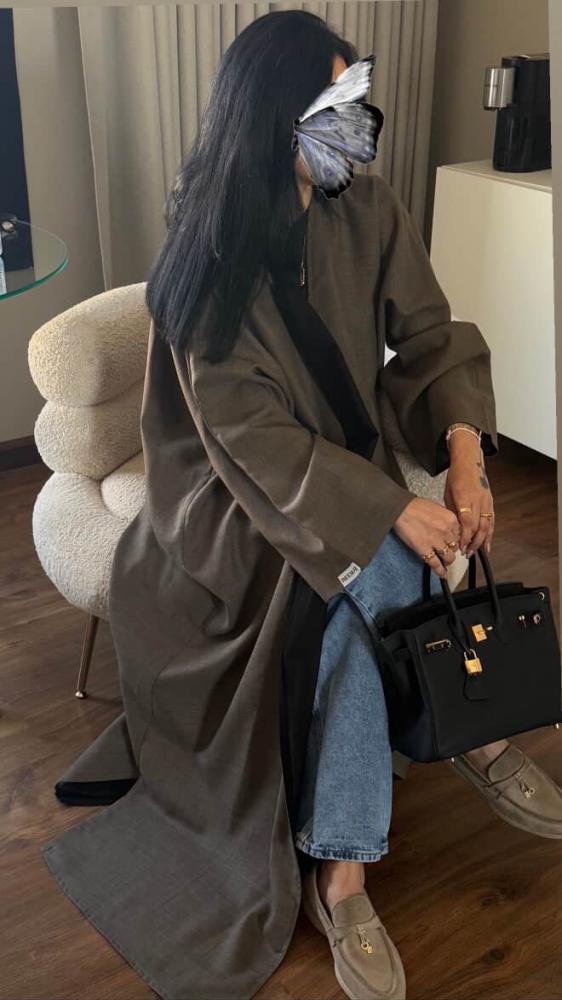 لنن مبطن بشيفون دبل فيس ينلبس وجهين مع طرحه اسود ساده قصة ربع بشت مع فتحات سفليه عرض الكم 9 انش