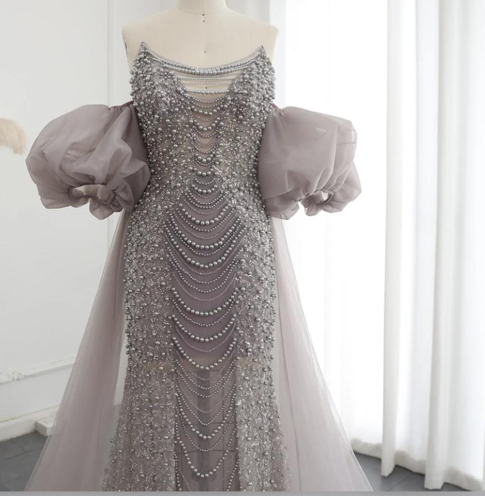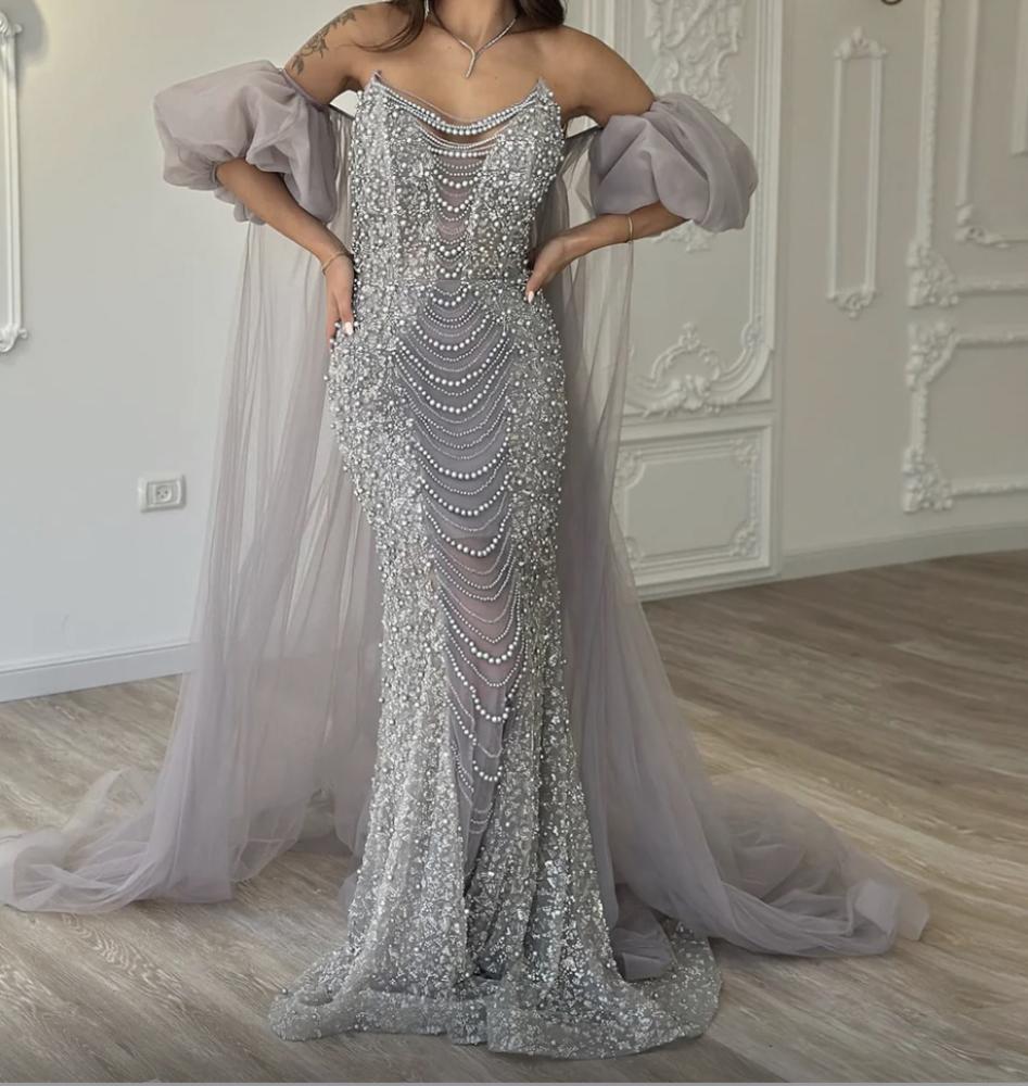 فستان باللؤلؤ مع كاب