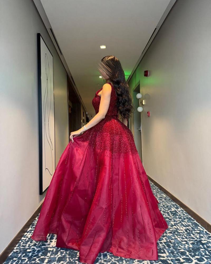 فستان ملكة تطريز يدوي عودي - تصميم ملكي راقي - إطلالة متألقة