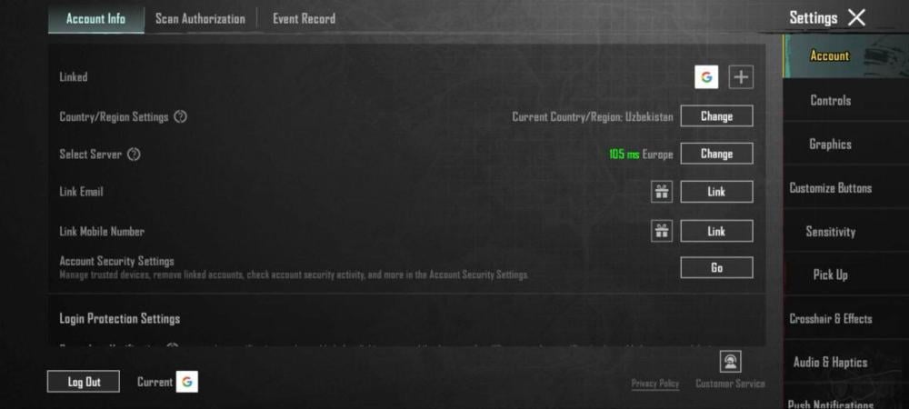 - تأكد من صور الحساب وامكانية تغيير السيرفر أو الدولة.