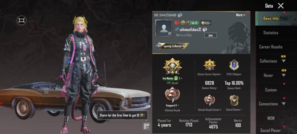 - حساب ببجي عالمية لفل 61