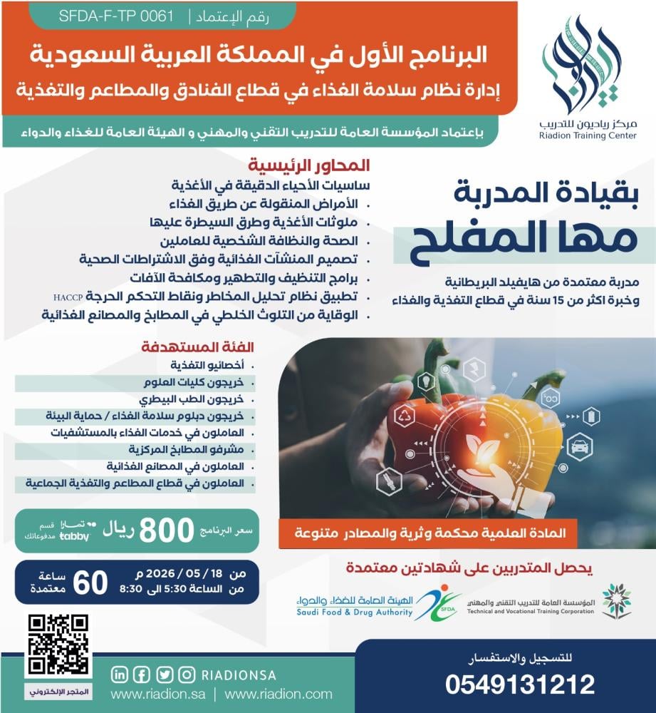 باعتماد المؤسسة العامة للتدريب التقني والمهني و الهيئة العامة للغذاء والدواء