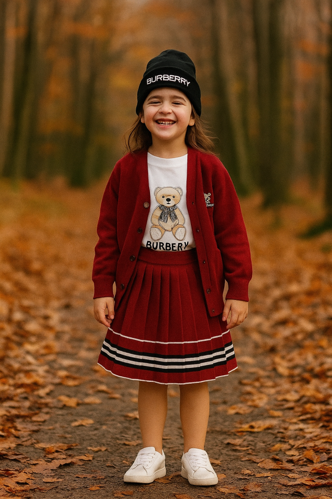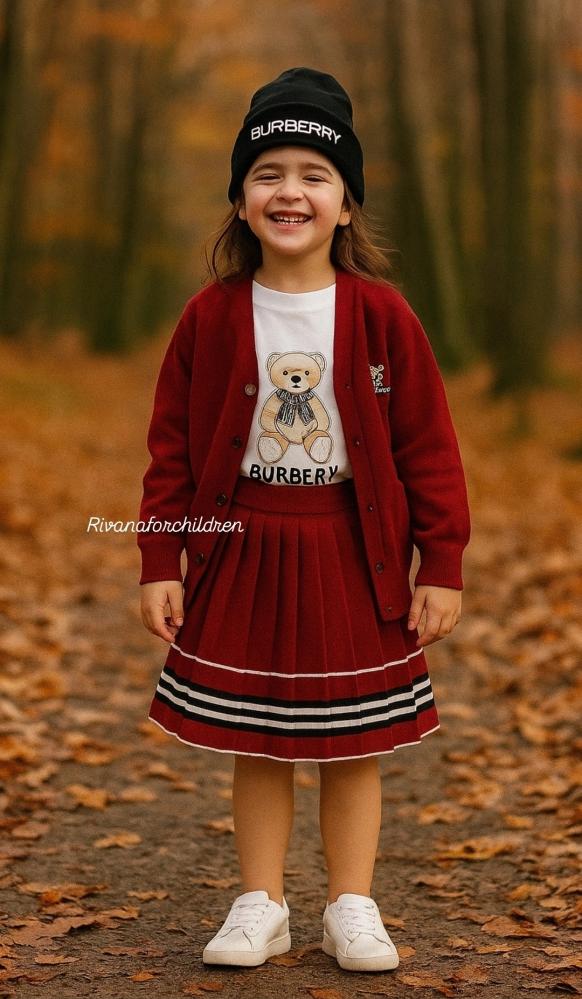تيور بناتي شتوي من اربع قطع (قبعه + التنورة + بلوزة داخليه كم طويل + الجكت)