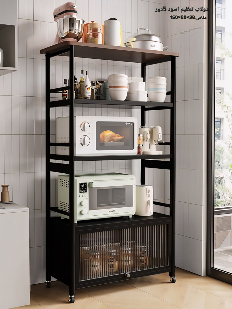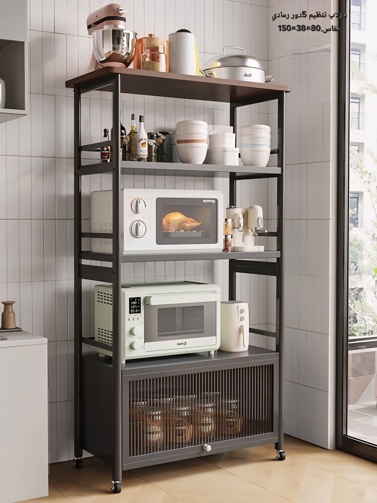منظم مطبخ أنيق يوفر لك المساحة المثالية لترتيب الميكروويف والأدوات المنزلية.