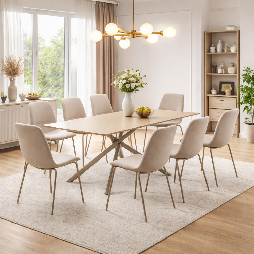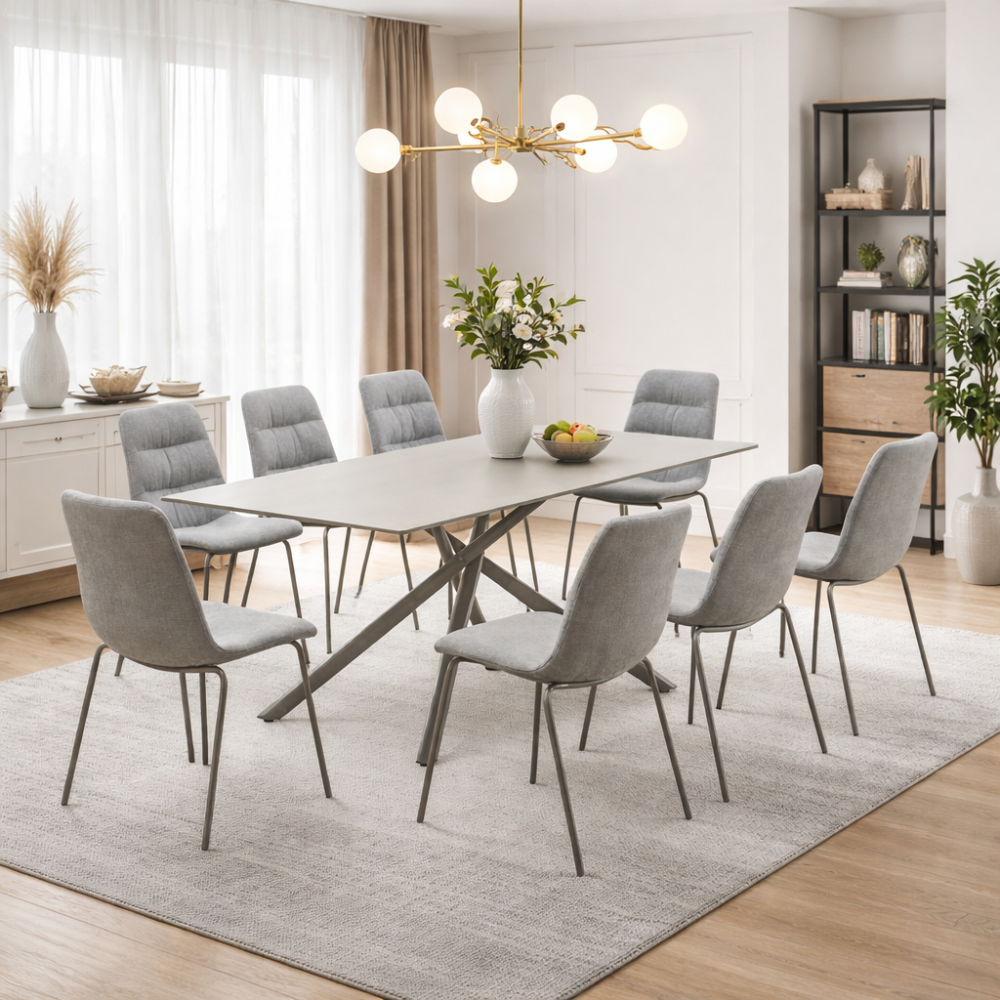 طاولة طعام سرميك 8 كراسي- بيج- رصاصي.