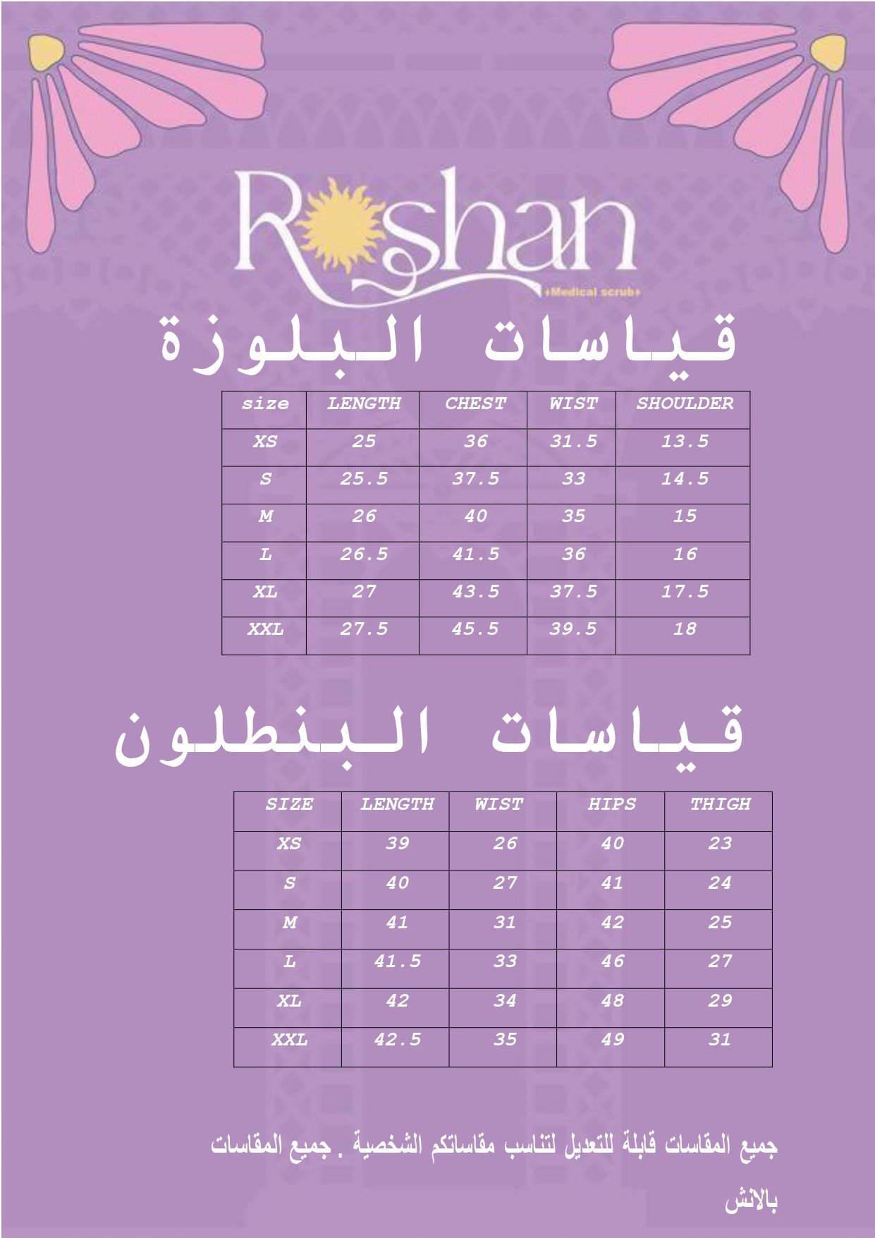 جميع المقاسات قابلة للتعديل لتناسب مقاساتك الخاصة , يمكنك إضافتها في خانة الملاحظات
