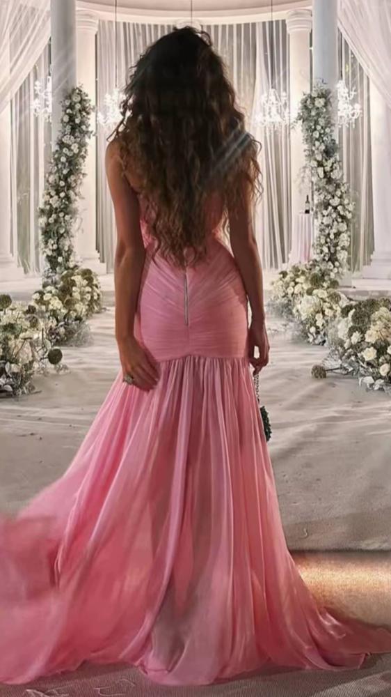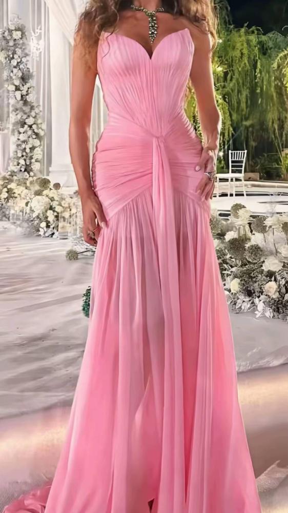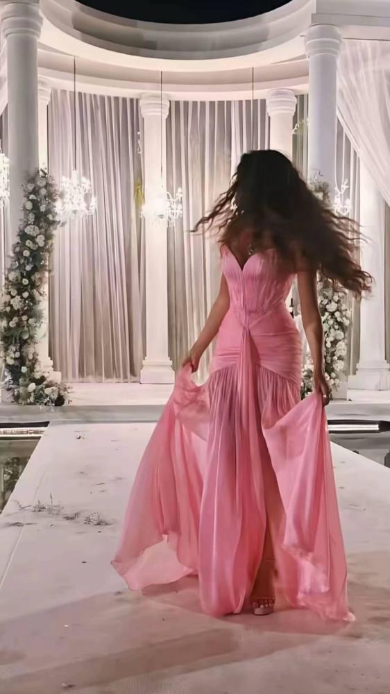 فستان وردي شيفون تكسرات