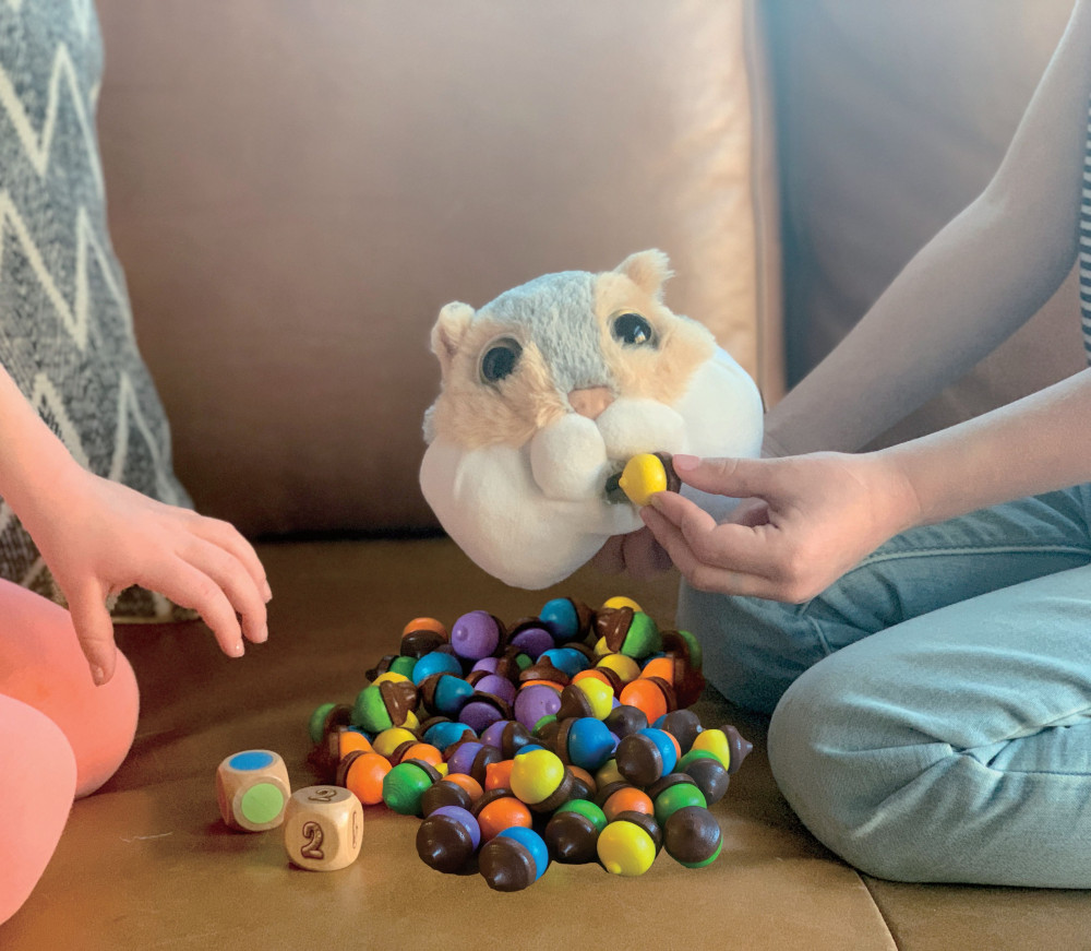 Fuzzy is hungry and needs you to feed him! First you need to roll the jumbo wooden dice and then go hunting for acorns. Now it’s time to feed Fuzzy! His stretchy cheeks sure can hold a lot of acorns! Be first to feed Fuzzy all your acorns and win!