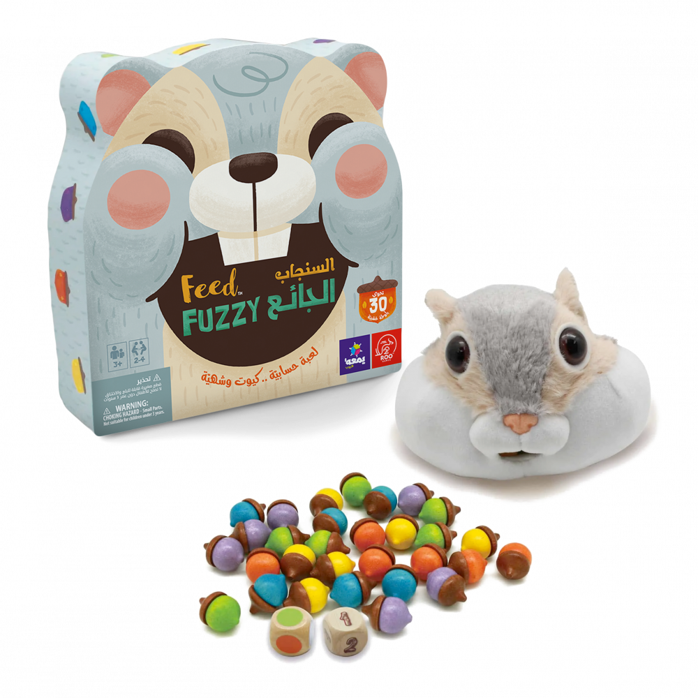 السنجاب الجائع فازي.. يحتاج إلى من يطعمه. قم برمي قطع النرد الخشبيّة ثم قم بالتقاط البلّوط. والآن حان وقت إطعام فازي. ومن الأكيد أن خدّيه المرنين يمكنهما تحمّل المزيد من البلّوط. أطعم السنجاب فازي جميع قطع البلّوط الخاصة بك أولاً، واربح اللعبة.